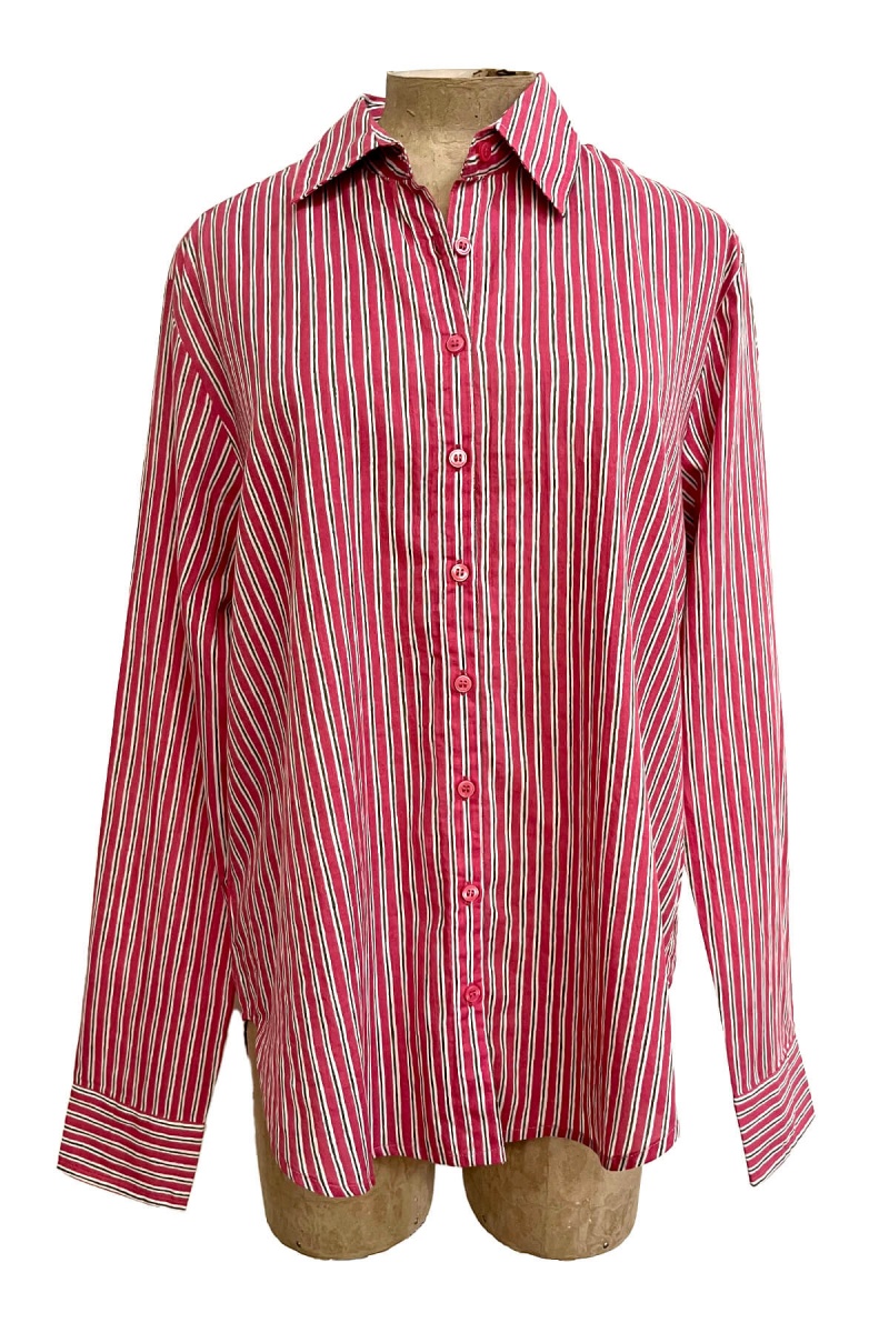 La chemise Kayane est parfaite pour la saison, sa matière légère est agréable à porter en toute circonstance. Plusieurs coloris de rayures disponibles. Tenues à composer en total look ou bien avec un bas dans des tons similaires à la chemise ou encore en denim.