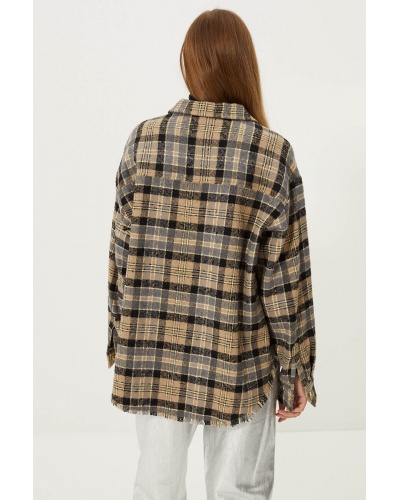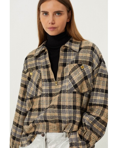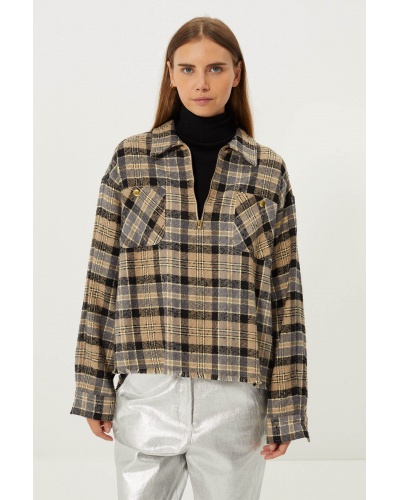 Top motif tartan en coton gratté