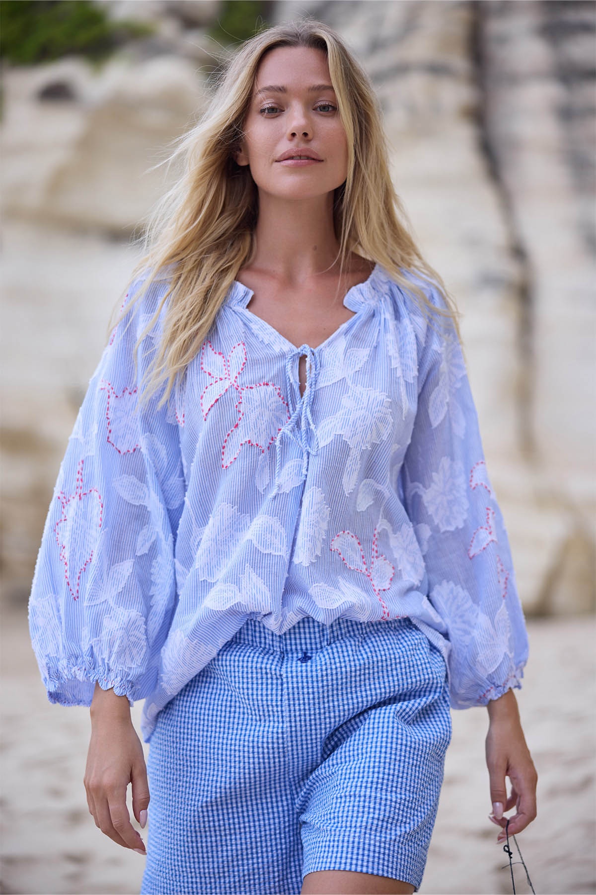 Sa coupe ample en fait une blouse agréable à porter, facile à associer à un short ou un pantalon léger. Aérienne, romantique et très confortable, la blouse Tily s’impose comme une pièce incontournable de la saison, parfaite pour un look estival chic et décontracté.