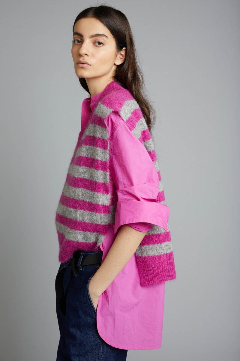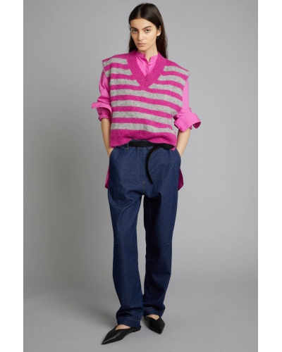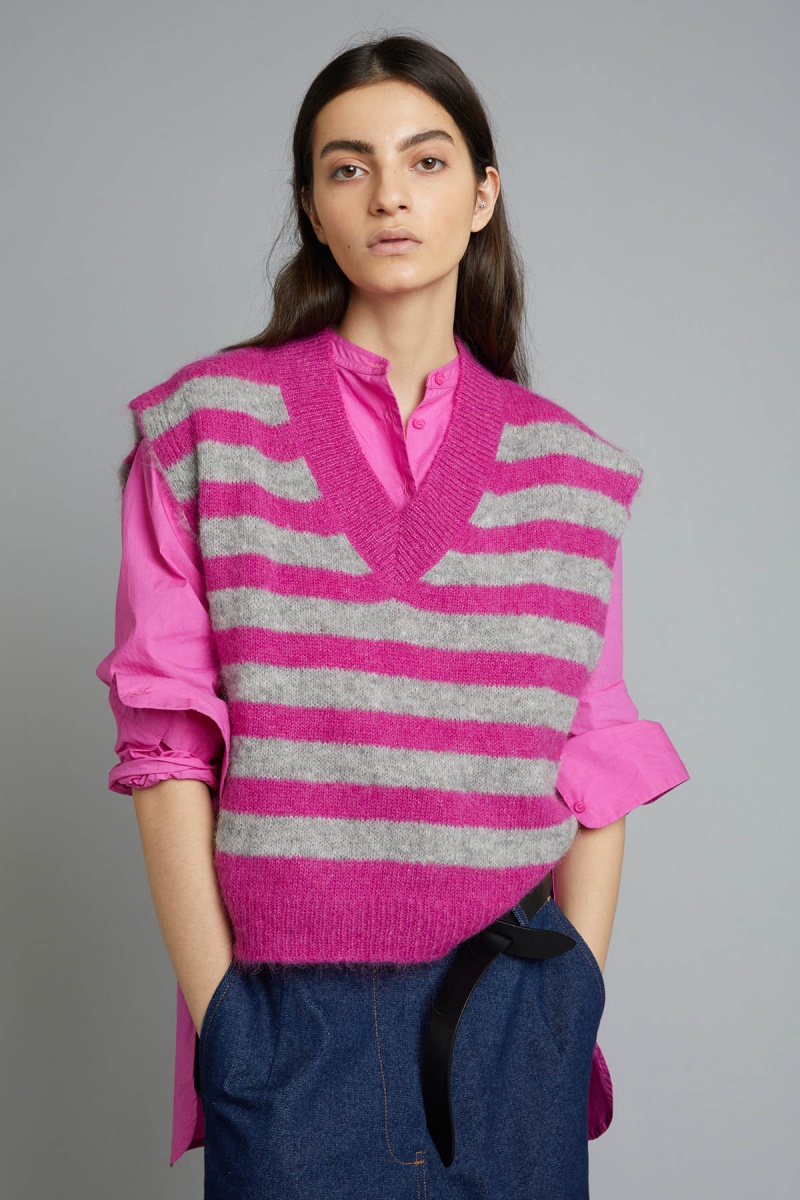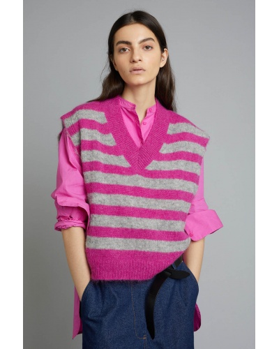 Pull sans manches alpaga à rayures