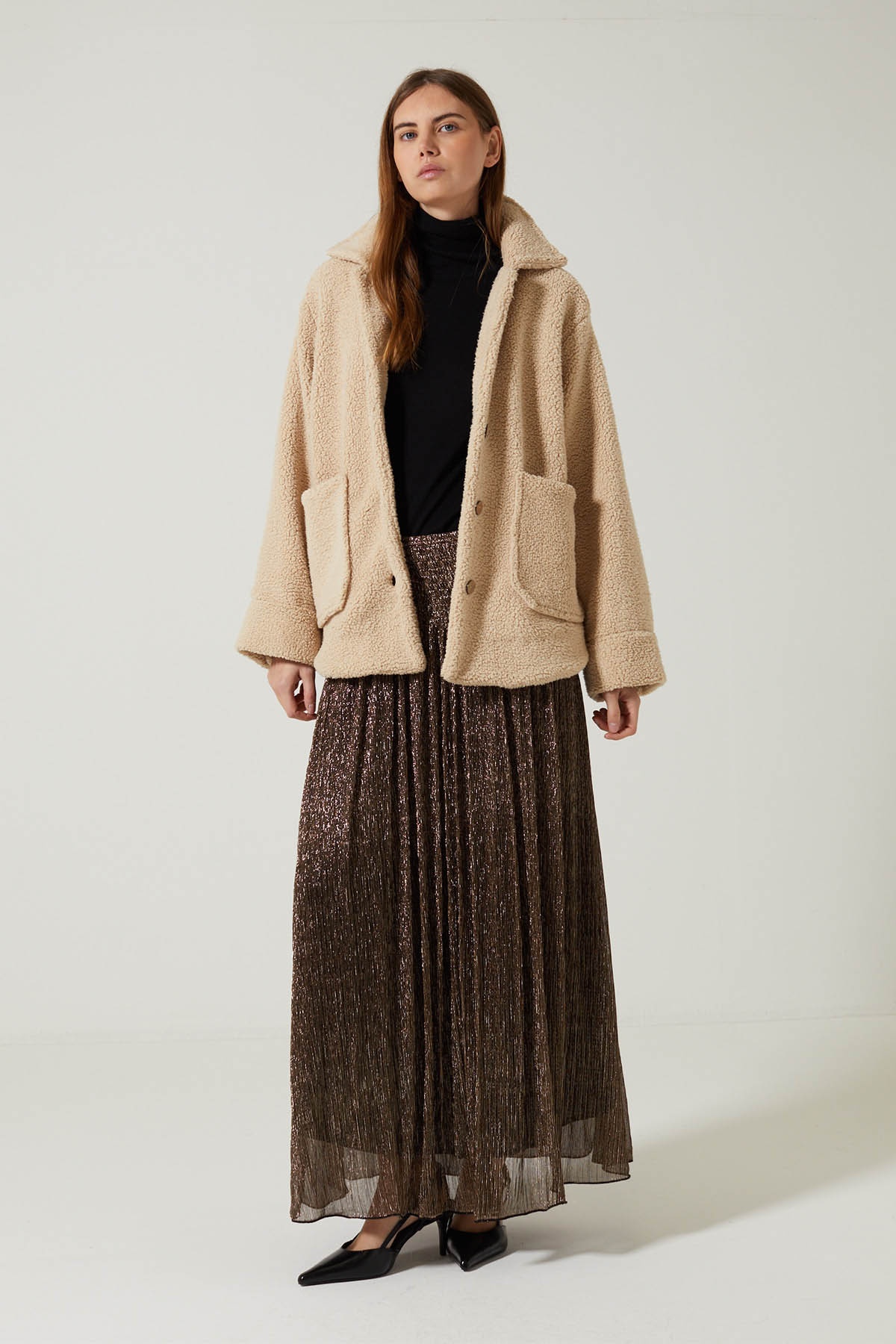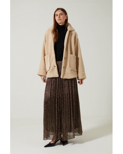 Facile à associer, elle se porte aussi bien avec un jean qu'avec la jupe Assia en lurex et un pull pour un look casual stylé. Un essentiel de saison qui conjugue confort, chaleur et allure moderne.