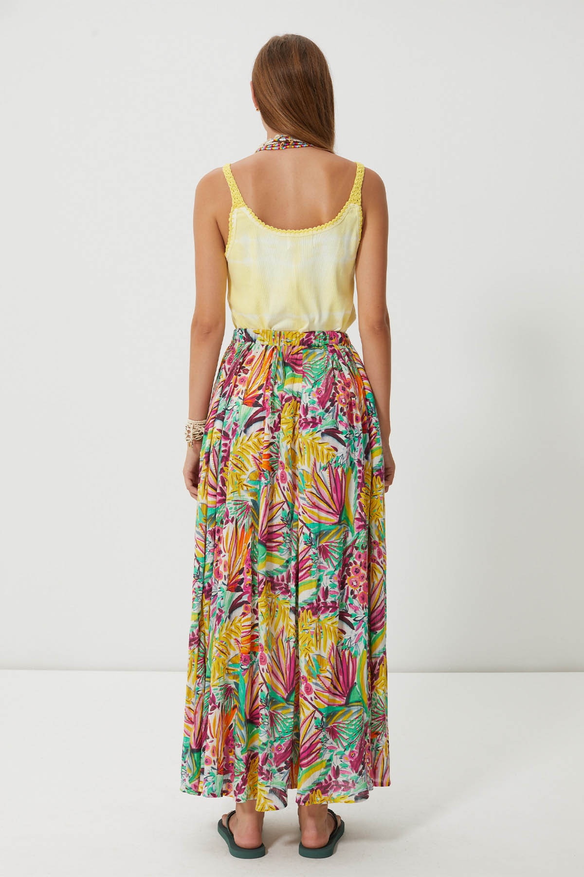 Associez la jupe Sayu avec une blouse unie pour mettre en valeur son imprimé éclatant ou bien avec un top coloré tie&dye pour créer un look unique et vibrant.