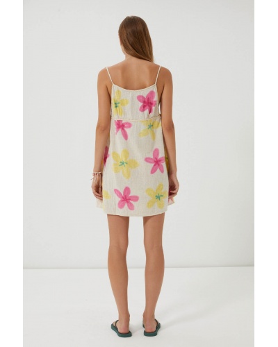 Avec ses fines bretelles et sa coupe fluide courte, elle garantit un confort absolu tout en sublimant votre silhouette. Parfaite pour une allure bohème chic, associez-la à des accessoires en pailles pour un look estival raffiné.