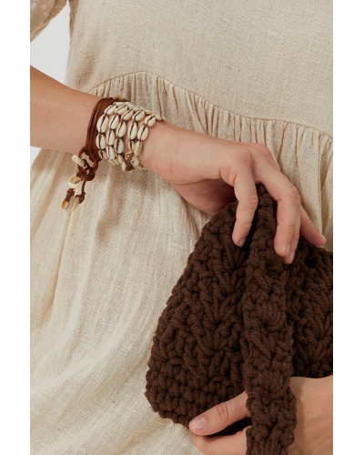 Accessoire phare de la saison, la ceinture Costal joue la carte du naturel et de la polyvalence. Composée de coquillages soigneusement noués à la main, elle s’adapte à toutes vos envies de style. Elle se porte aussi bien en ceinture pour marquer la taille, en collier ras-du-cou qu’en bracelet enroulé autour du poignet.