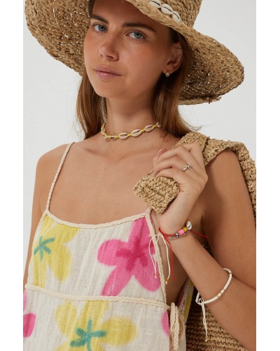 Disponible avec des perles jaunes, bleues ou roses, elle s’adapte à votre humeur et vos envies. Elle se marie parfaitement en superposition avec d'autres colliers pour un look d'été vibrant et joyeux.