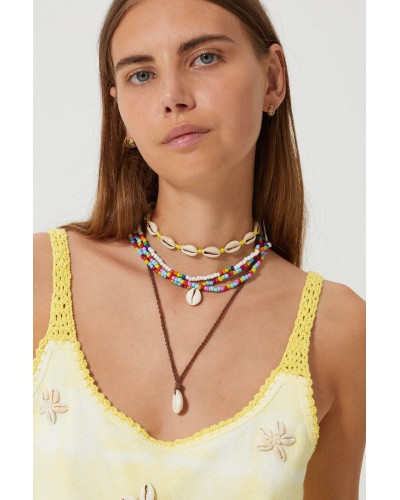 Disponible avec des perles jaunes, bleues ou roses, elle s’adapte à votre humeur et vos envies. Elle se marie parfaitement en superposition avec d'autres colliers pour un look d'été vibrant et joyeux.