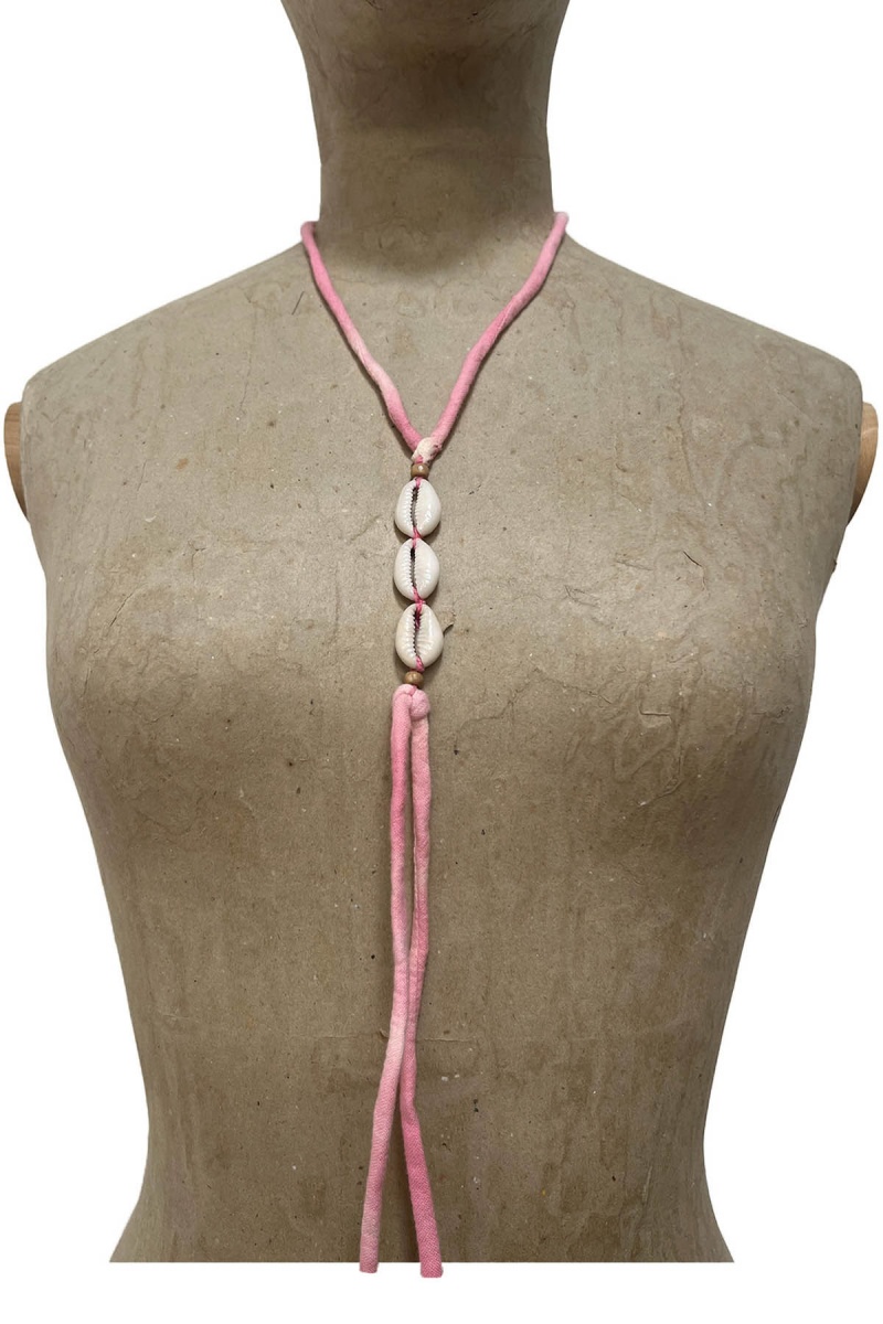 Minimaliste et original, le collier Win est composé de trois coquillages montés sur un lien en coton doux, en tie&dye rose pastel. Doté d’un fermoir classique discret, il s’ajuste facilement autour du cou pour un porté confortable.