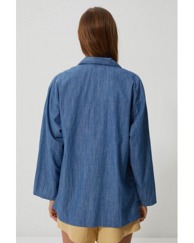 Son encolure fendue sans boutonnage lui confère un esprit décontracté chic, parfait pour une silhouette estivale à la fois naturelle et travaillée. À porter avec un short ou un pantalon large pour un look bohème maîtrisé.