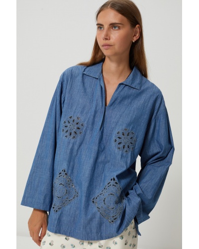 Top en coton denim et broderies