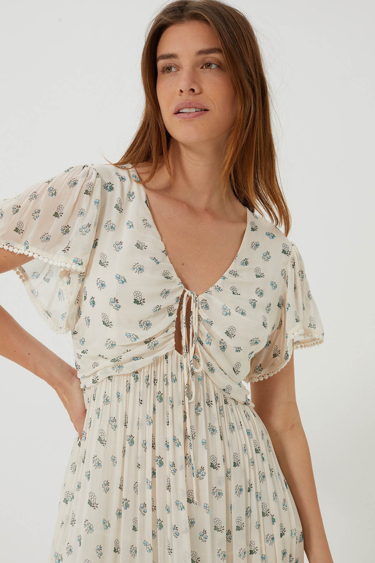 Son tissu léger en viscose, imprimé d’un motif floral subtil, accompagne les mouvements avec grâce pour un porté à la fois confortable et élégant.