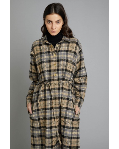Robe longue en coton gratté à carreaux