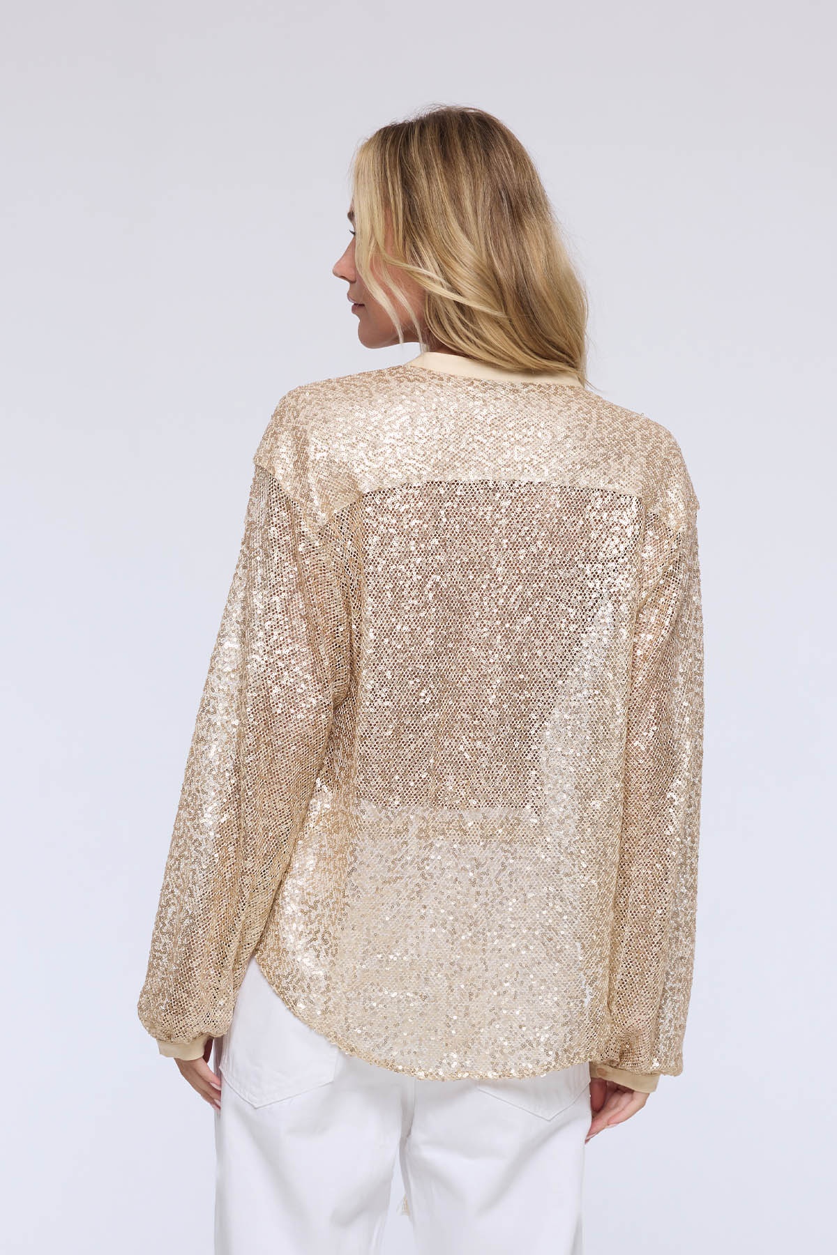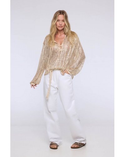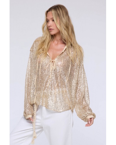 Blouse beige à sequins