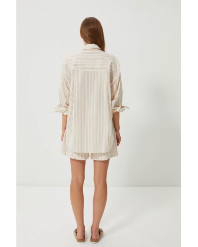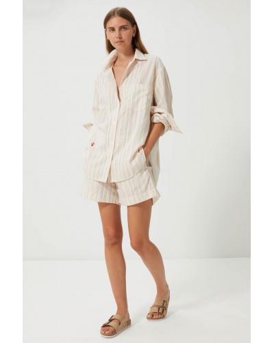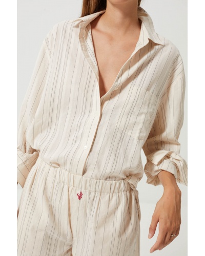 Confectionné dans une matière légère à fines rayures très délicates, il vous accompagne avec confort lors des journées ensoleillées.