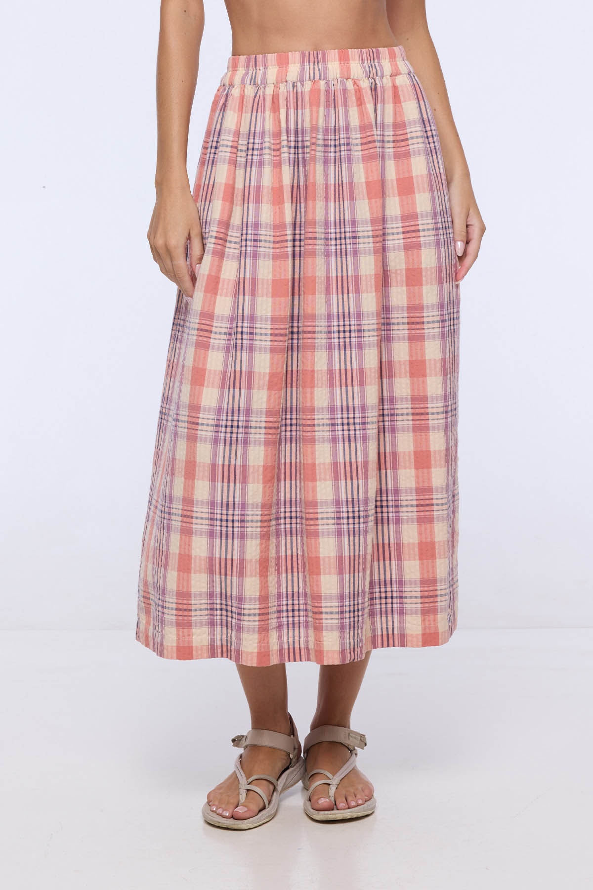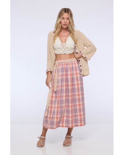 La jupe Belly est une pièce essentielle de la nouvelle collection printemps–été. Confectionnée dans une matière légère, elle met en valeur une palette lumineuse de carreaux pastels qui apportent fraîcheur et douceur à la silhouette.