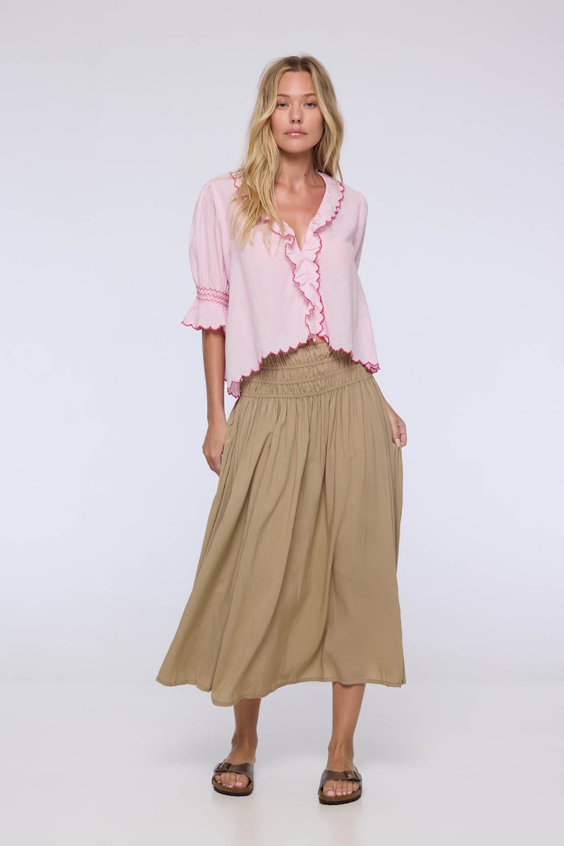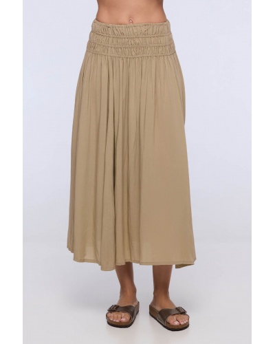 Jupe longue femme taille smockée beige - JOFFI | CHARLIE JOE