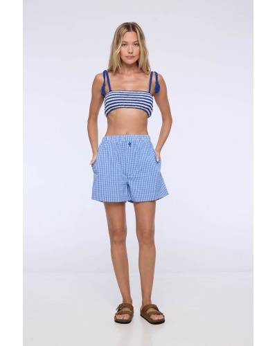 Un essentiel estival à l’allure décontractée et intemporelle. Le short Vago séduit par sa coupe fluide et son motif vichy délicat, parfait pour une silhouette fraîche et estivale.