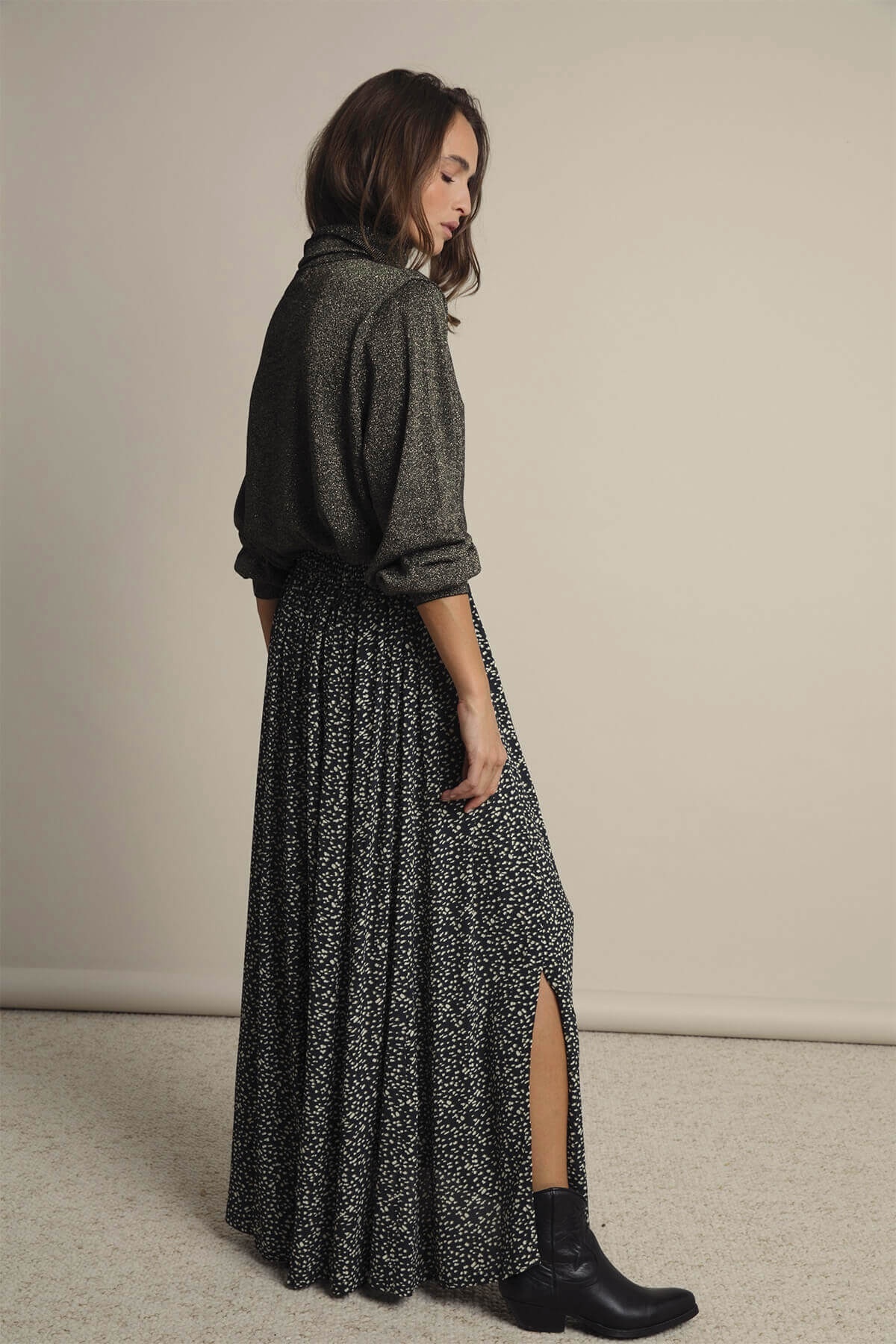 search Aperçu rapide Chariot Supprimer du panier Ajouter aux favoris Blouse NIKITA Prix 140,00 € Blouse en lurex dorée . Coupe droite . Encolure V . Manches longues . Base arrondie . Plus longue à l'arrière qu'à l'avant...