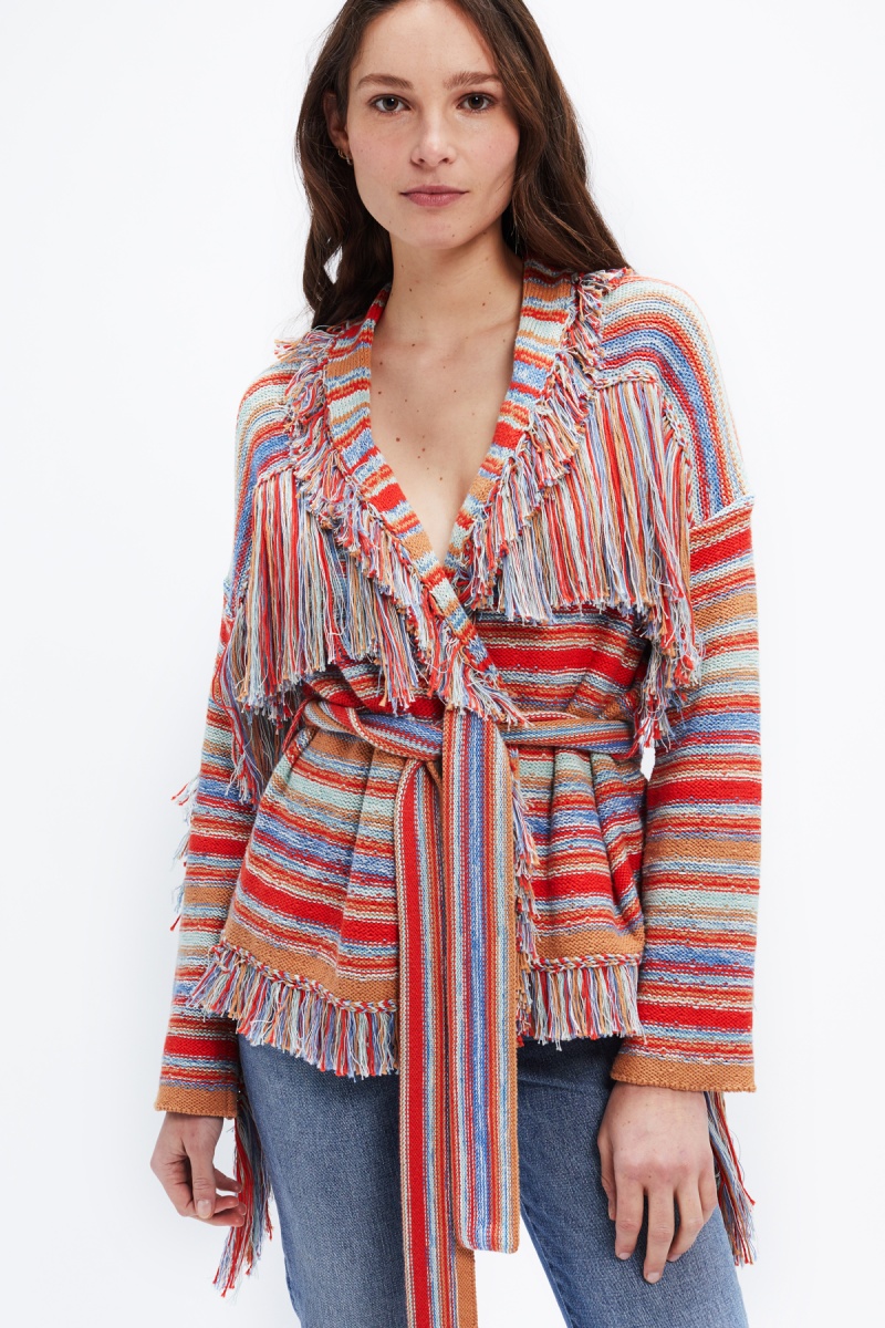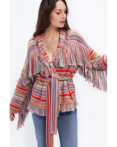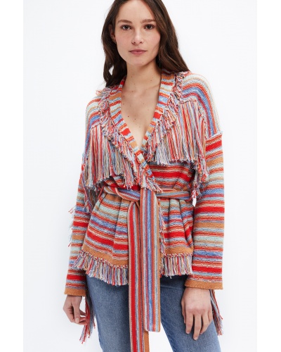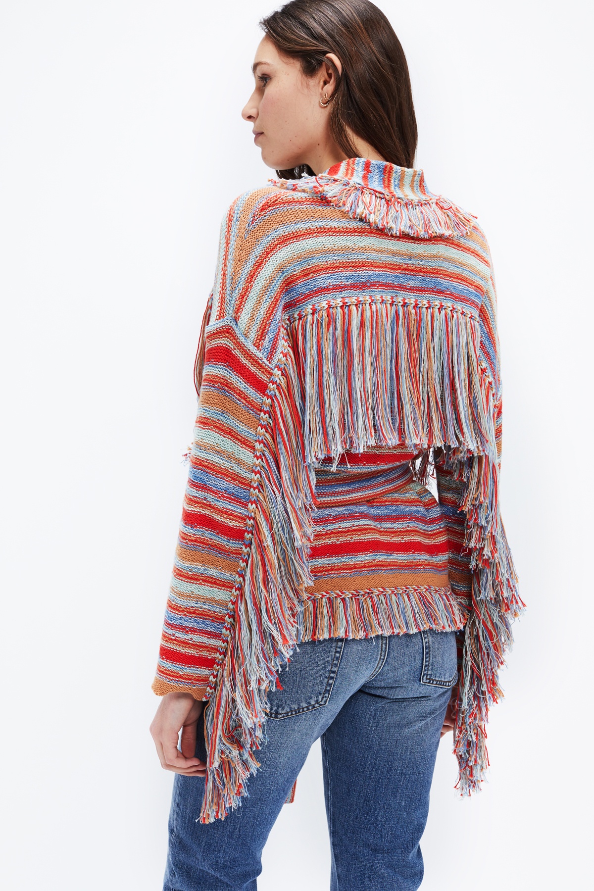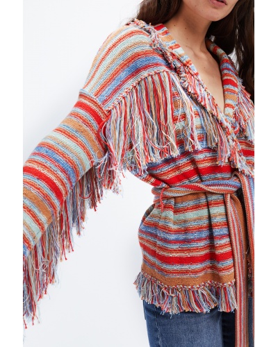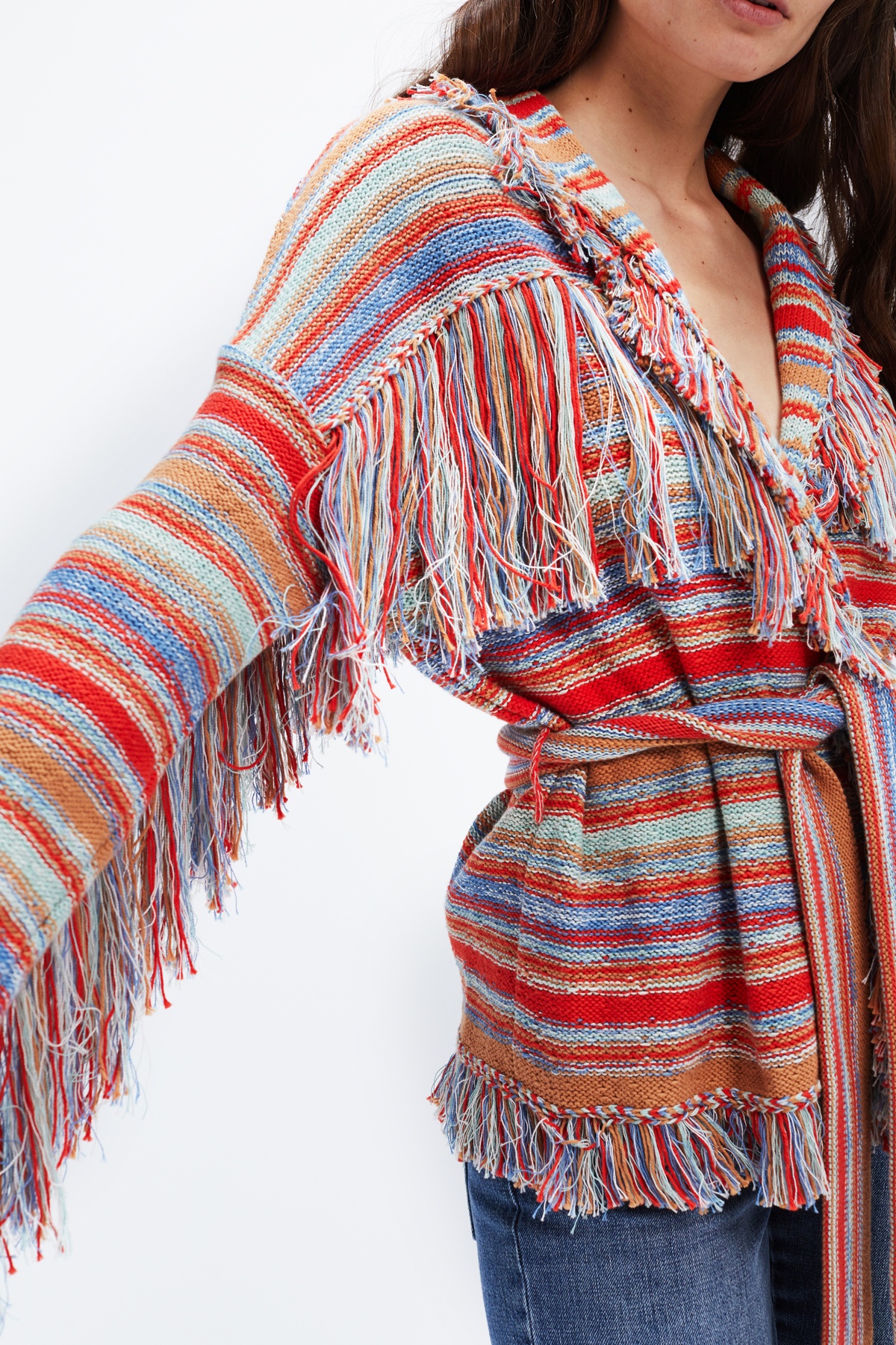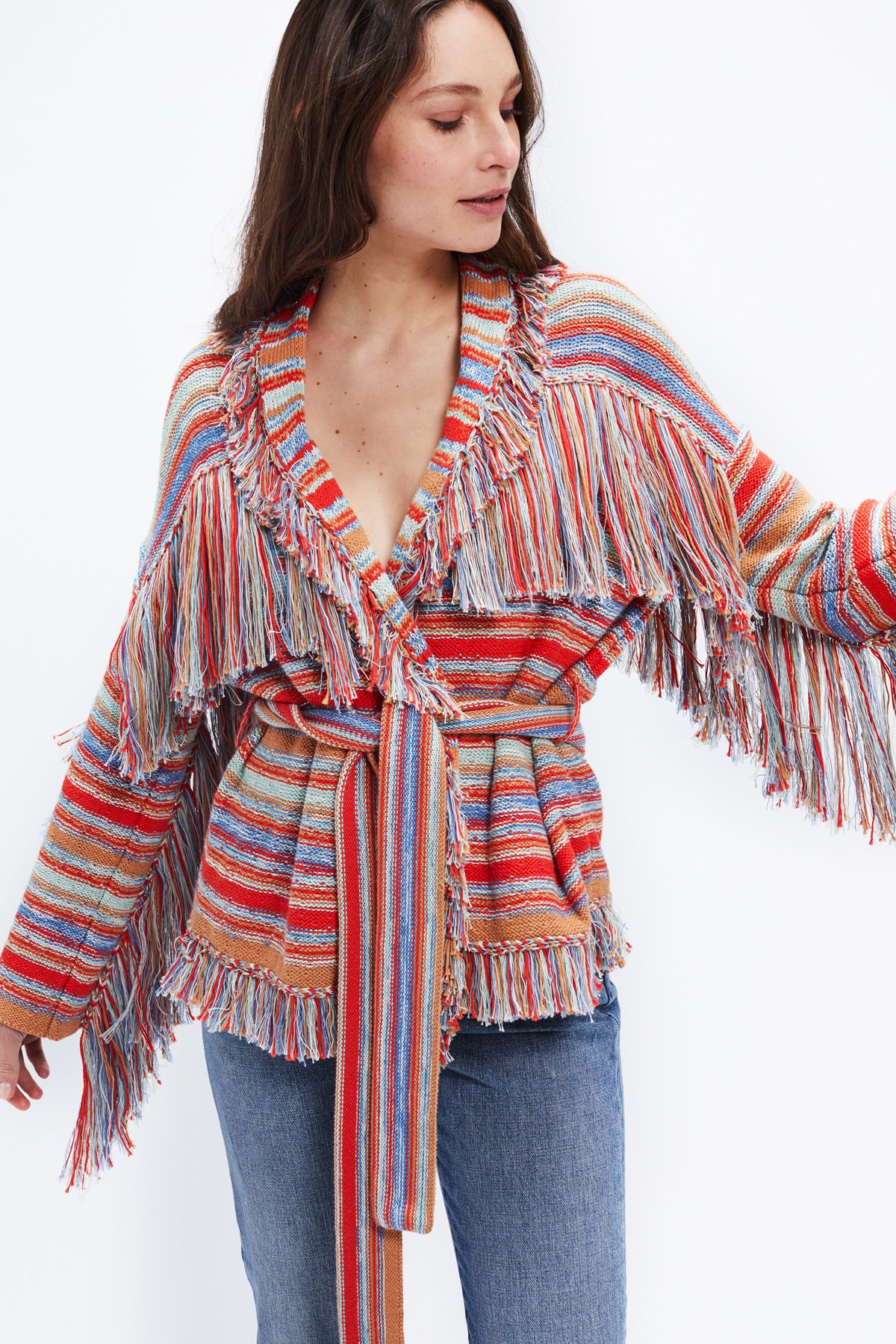 Le cardigan Puno en coton mélangé est crocheté en mailles serrées et réalisé à la main par nos artisans au Pérou. Ses longues franges colorées font du Puno une pièce hippy chic que porterez à volonté pour vos soirées d'été.