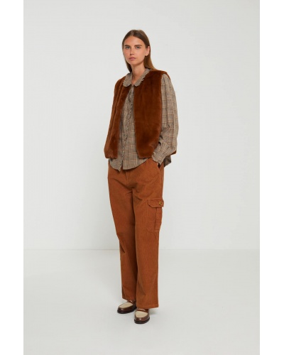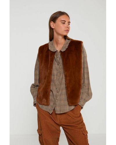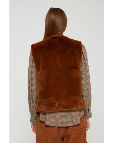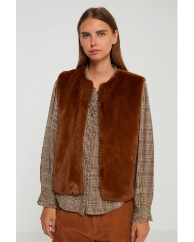Découvrez notre gilet Naiza en fausse fourrure. Il vous garde au chaud sans être trop épais, vous permettant de rester élégante même par temps frais. Que vous souhaitiez ajouter une touche de sophistication à une tenue décontractée ou sublimer une tenue plus habillée, notre gilet sans manche est le choix idéal. Sa coupe flatteuse s'adapte à toutes les silhouettes, mettant en valeur votre look avec élégance et modernité.