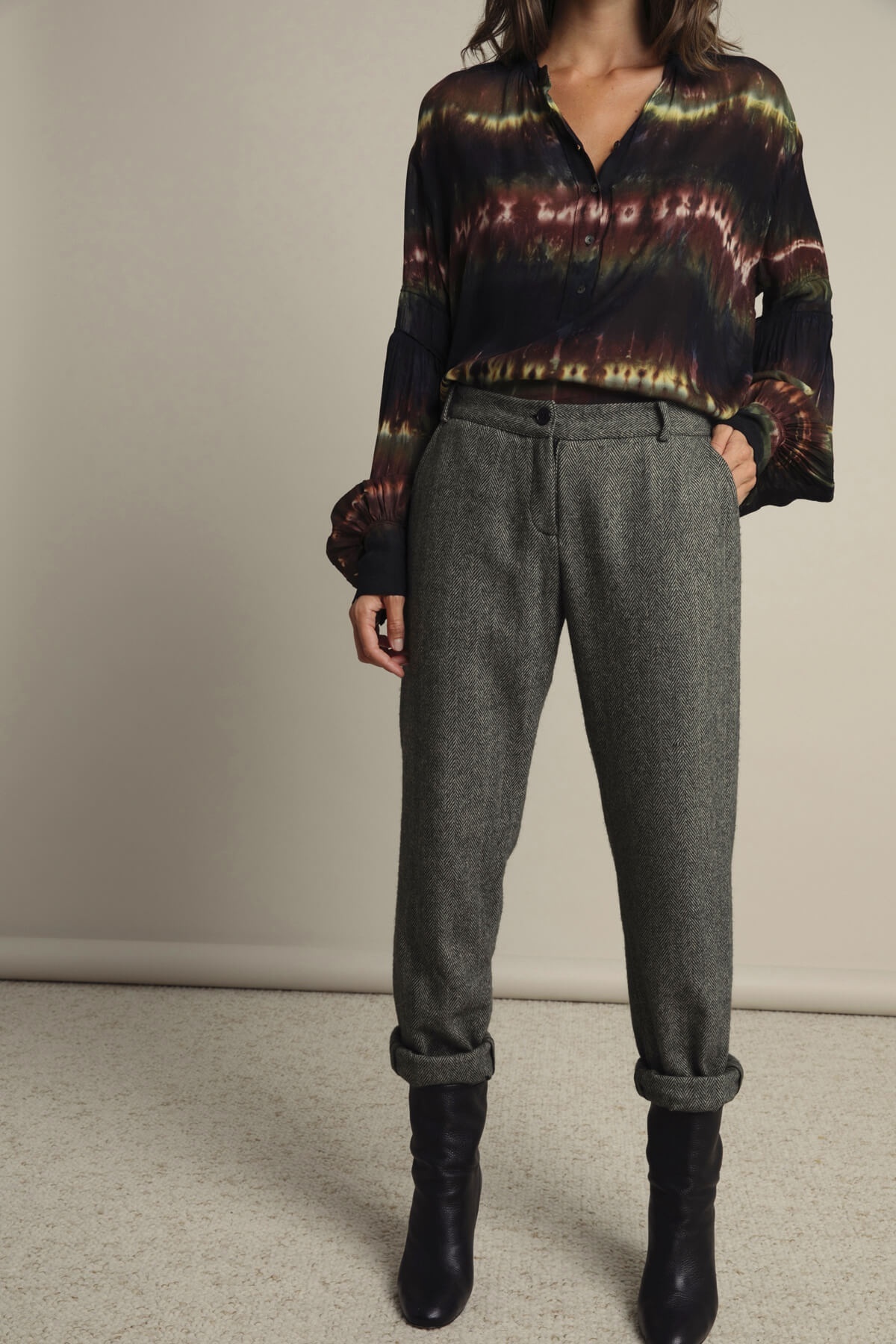 search Aperçu rapide Chariot Supprimer du panier Ajouter aux favoris Pantalon LOULA Prix 160,00 € Pantalon large en velours côtelé . Coupe ample . Taille élastiquée avec lien ajustable . Fausse braguette . Poches italiennes sur les...