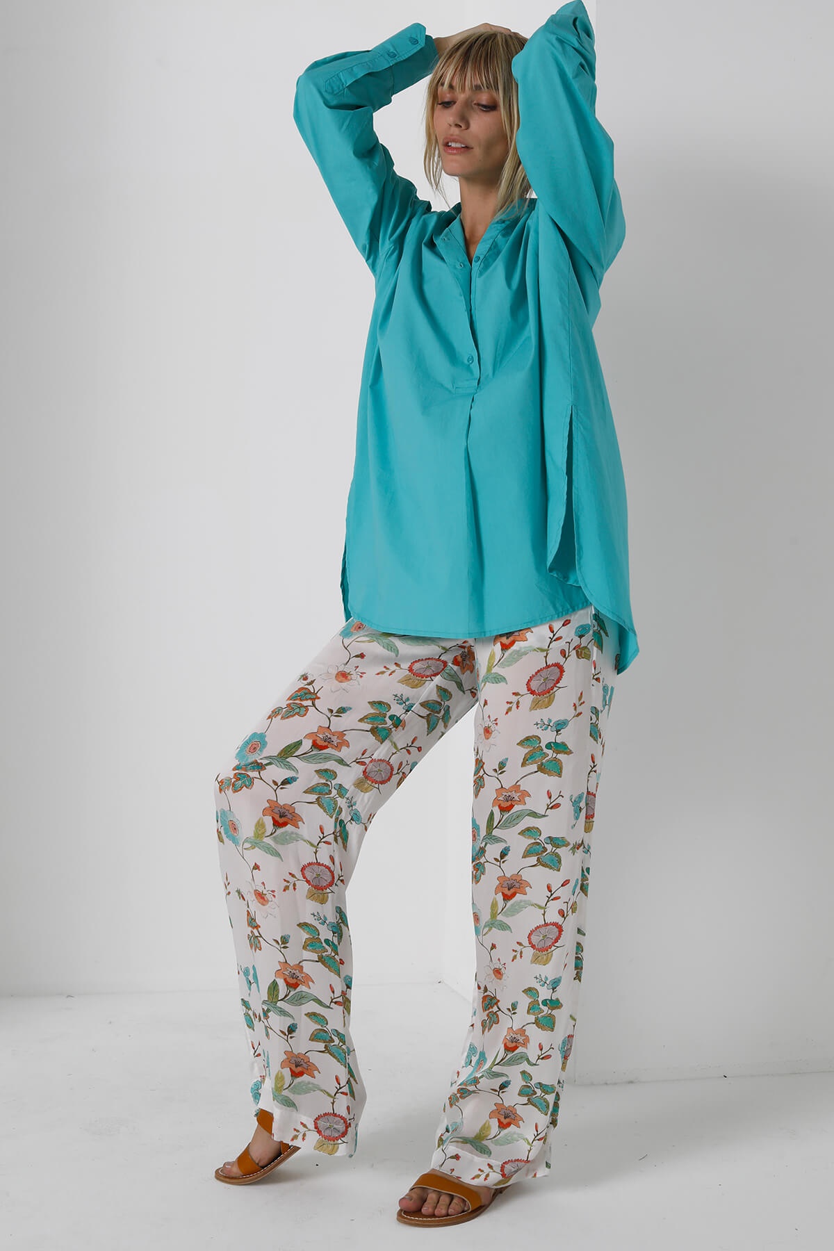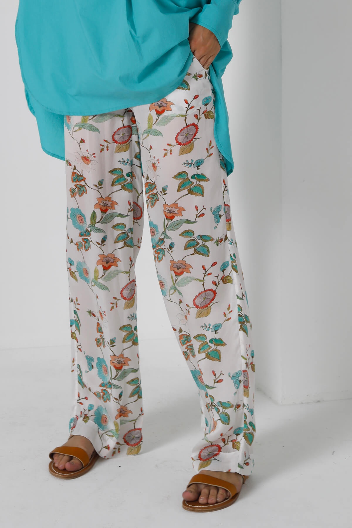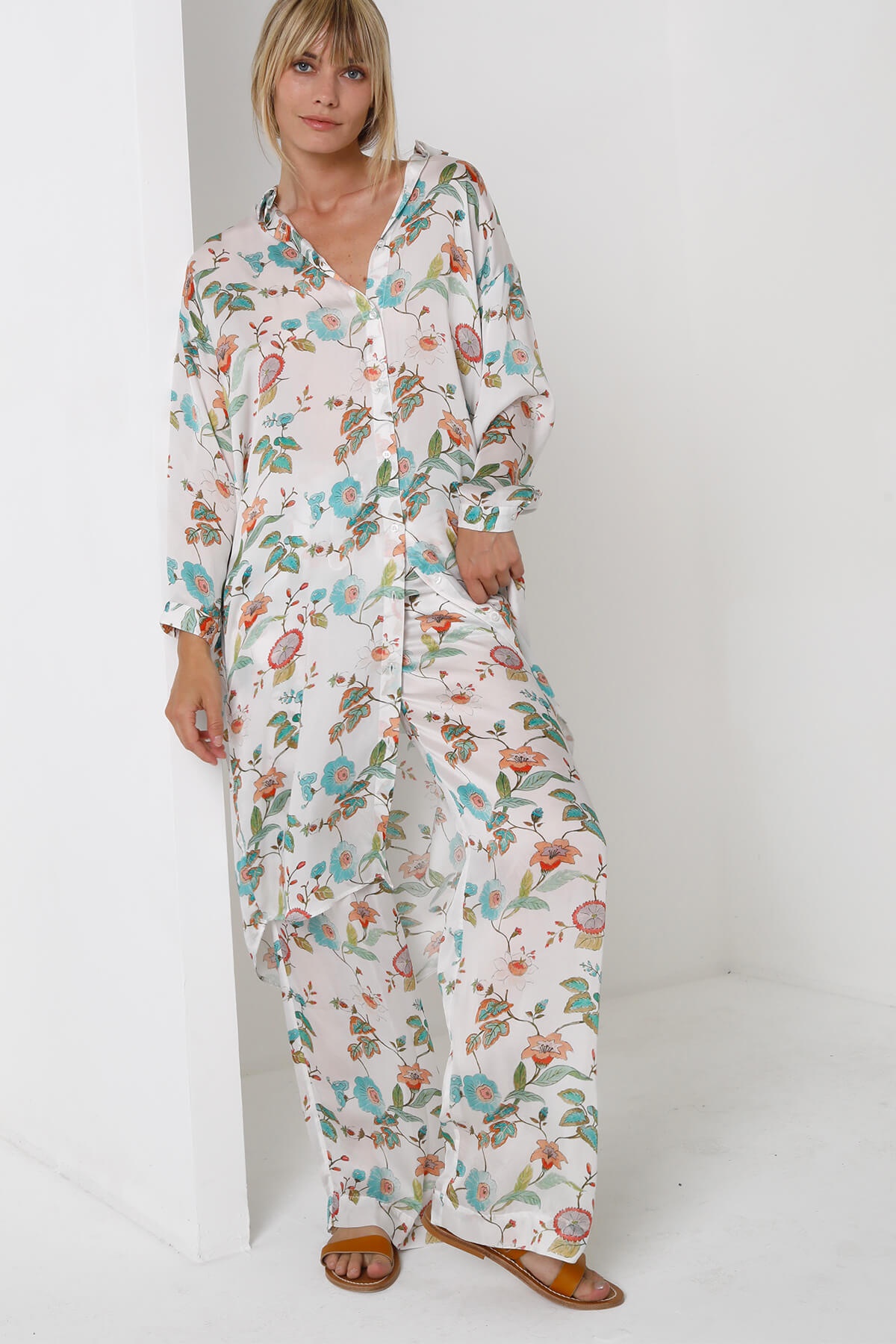 Le pantalon Stefano est la pièce à avoir dans son dressing ! Grâce à sa matière satinée, ce dernier est léger et doux laissant au corps une sensation de fraîcheur. Son motif printanier offre à votre look un côté romantique. À porter en total look avec notre robe chemise Tomaso ou bien un petit top aux couleurs similaires au fleurs.