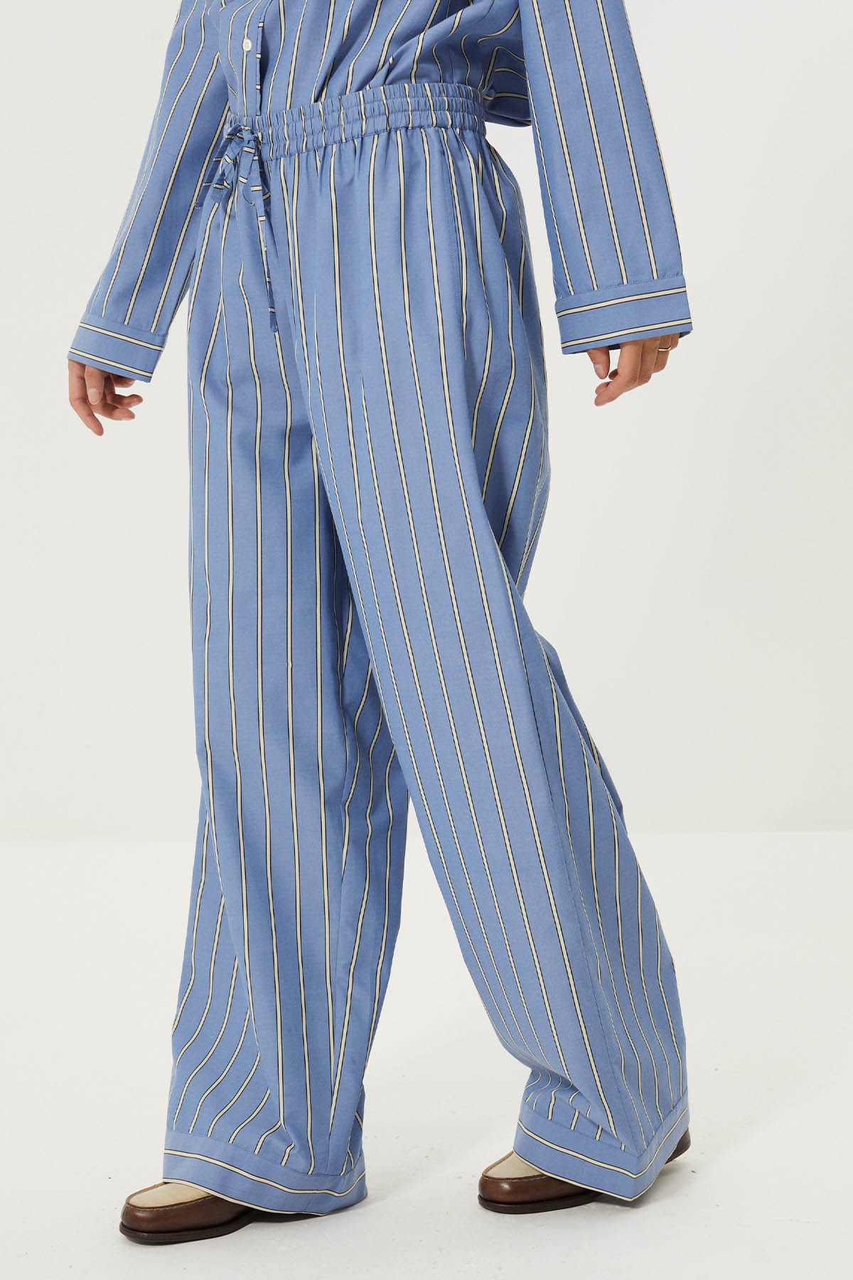 Pantalon à rayures en coton popeline