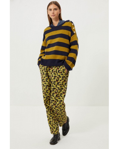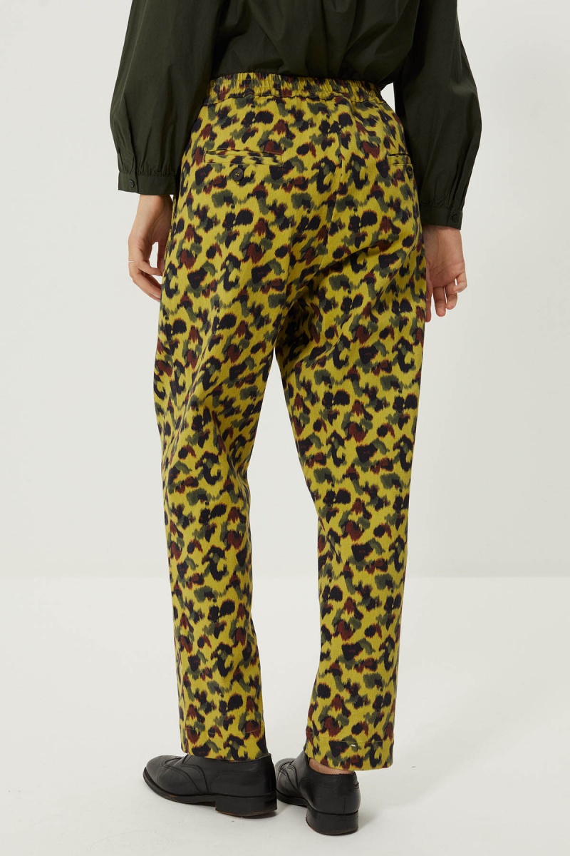 Le pantalon Zaira, confectionné en coton drill, se distingue par son audacieux motif, parfait pour ajouter une touche de caractère à votre garde-robe.