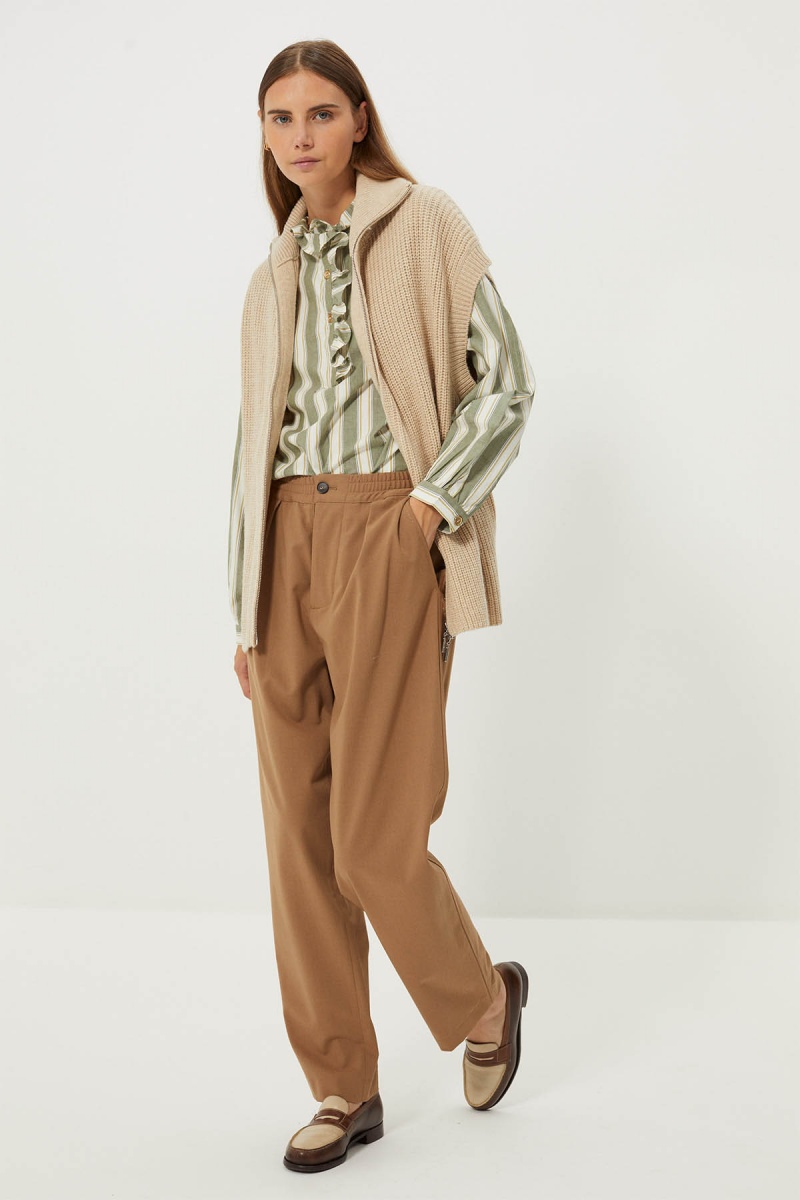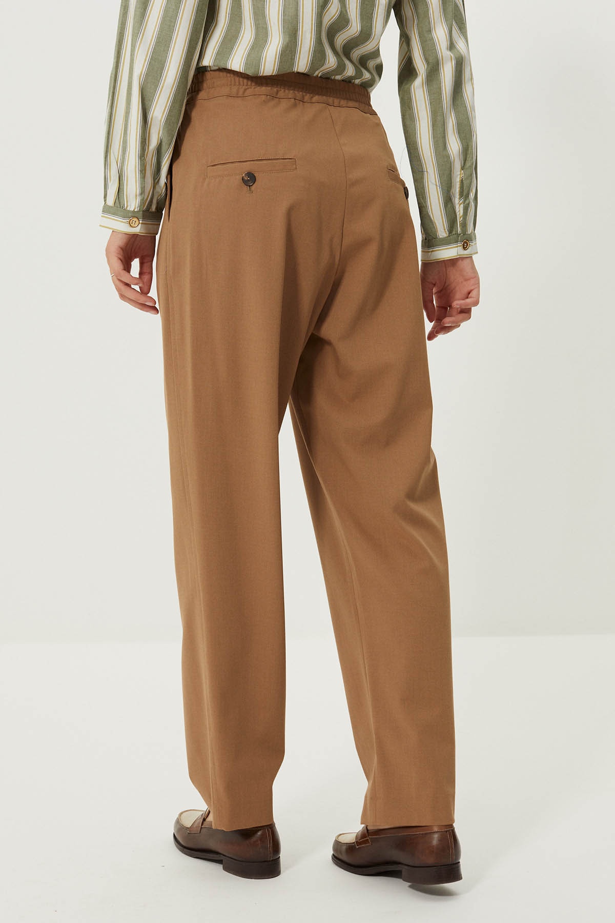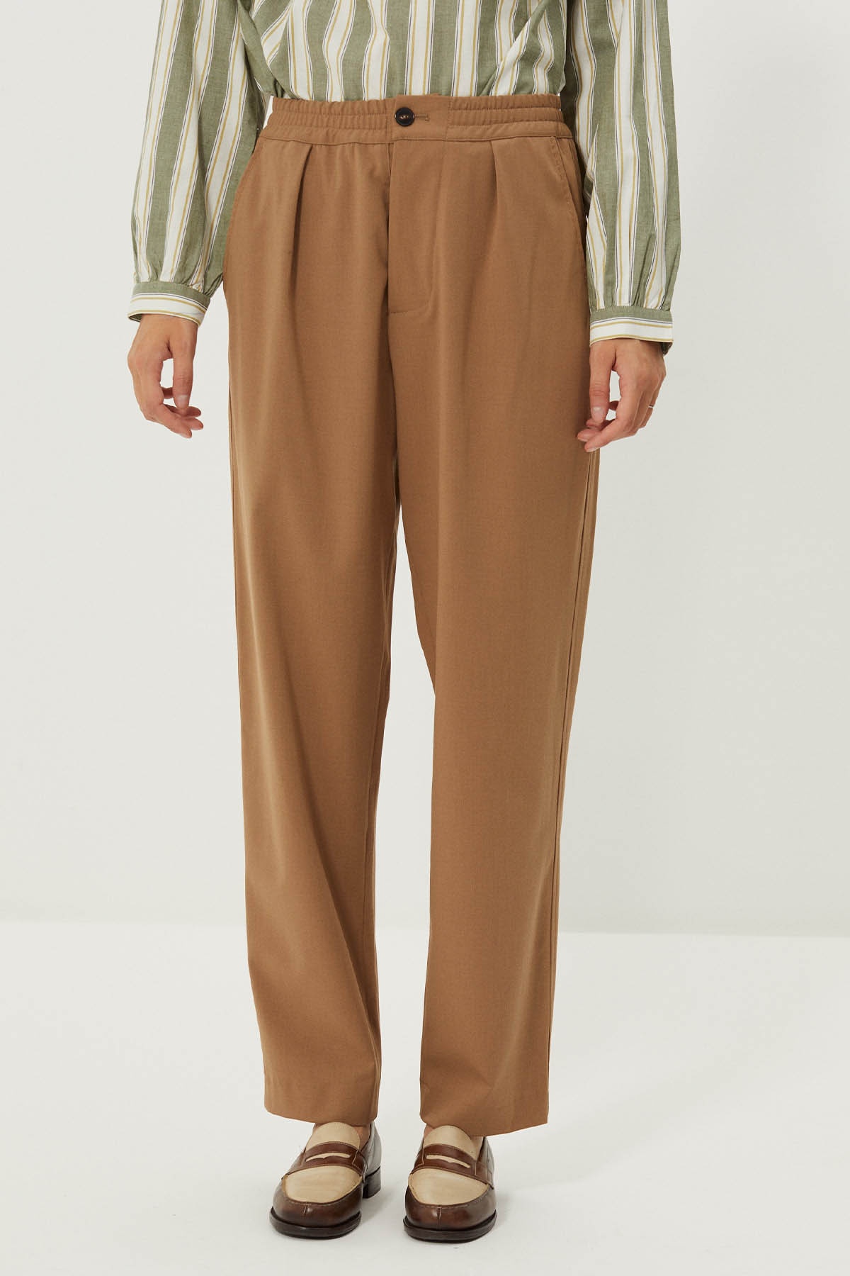 Conçu dans un coloris camel doux et lumineux, il apporte une note de chaleur à toutes vos tenues. Les plis avant soigneusement placés ajoutent une structure discrète, parfaits pour un look sophistiqué sans effort.