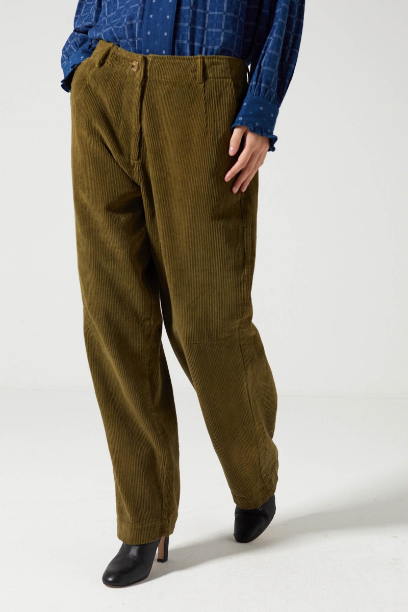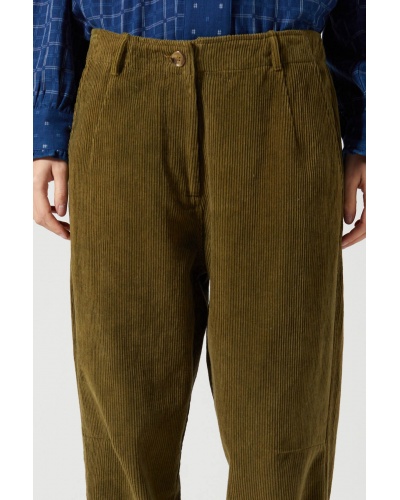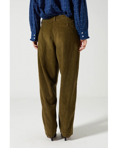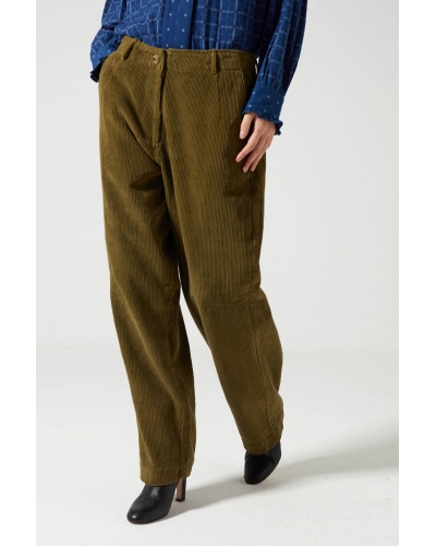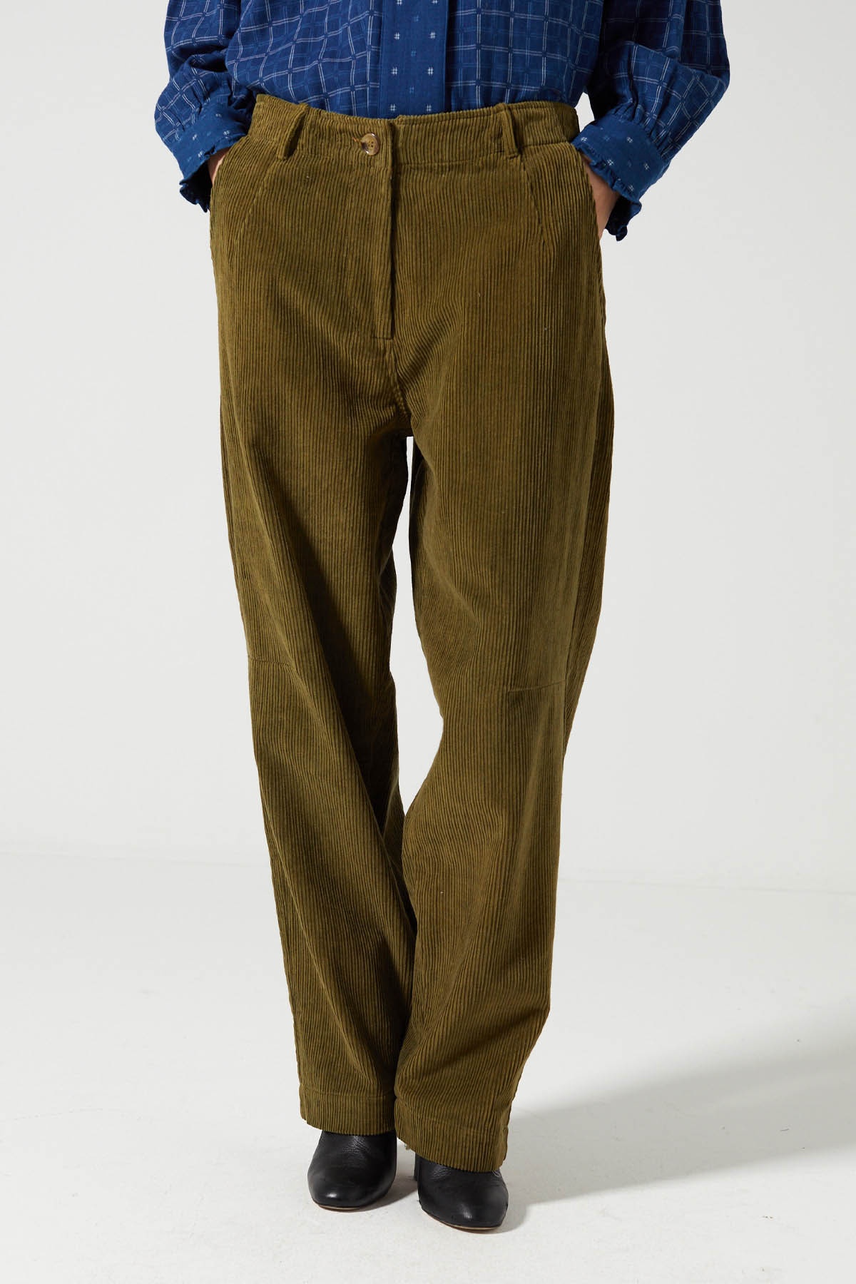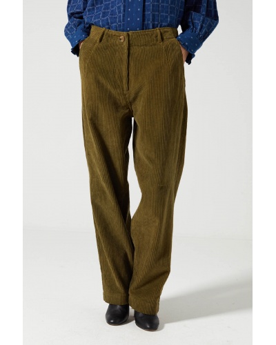 Découvrez le pantalon Amal en velours côtelé, parfait pour la nouvelle saison à venir. Sa coupe droite légèrement ample assure un tombé parfait et un confort absolu. Décliné dans un kaki profond, il s’impose comme une pièce forte et facile à associer au quotidien.