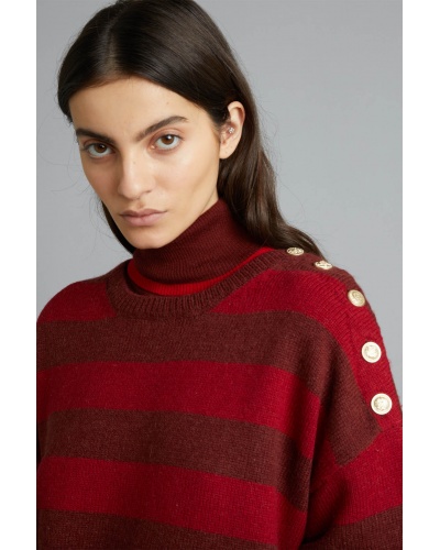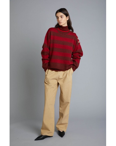 Le détail distinctif de ce modèle réside dans sa boutonnière dorée à l'épaule gauche, ajoutant une note élégante. Le pull Zita est une pièce polyvalente qui apporte une touche de couleur et de modernité à votre garde-robe.