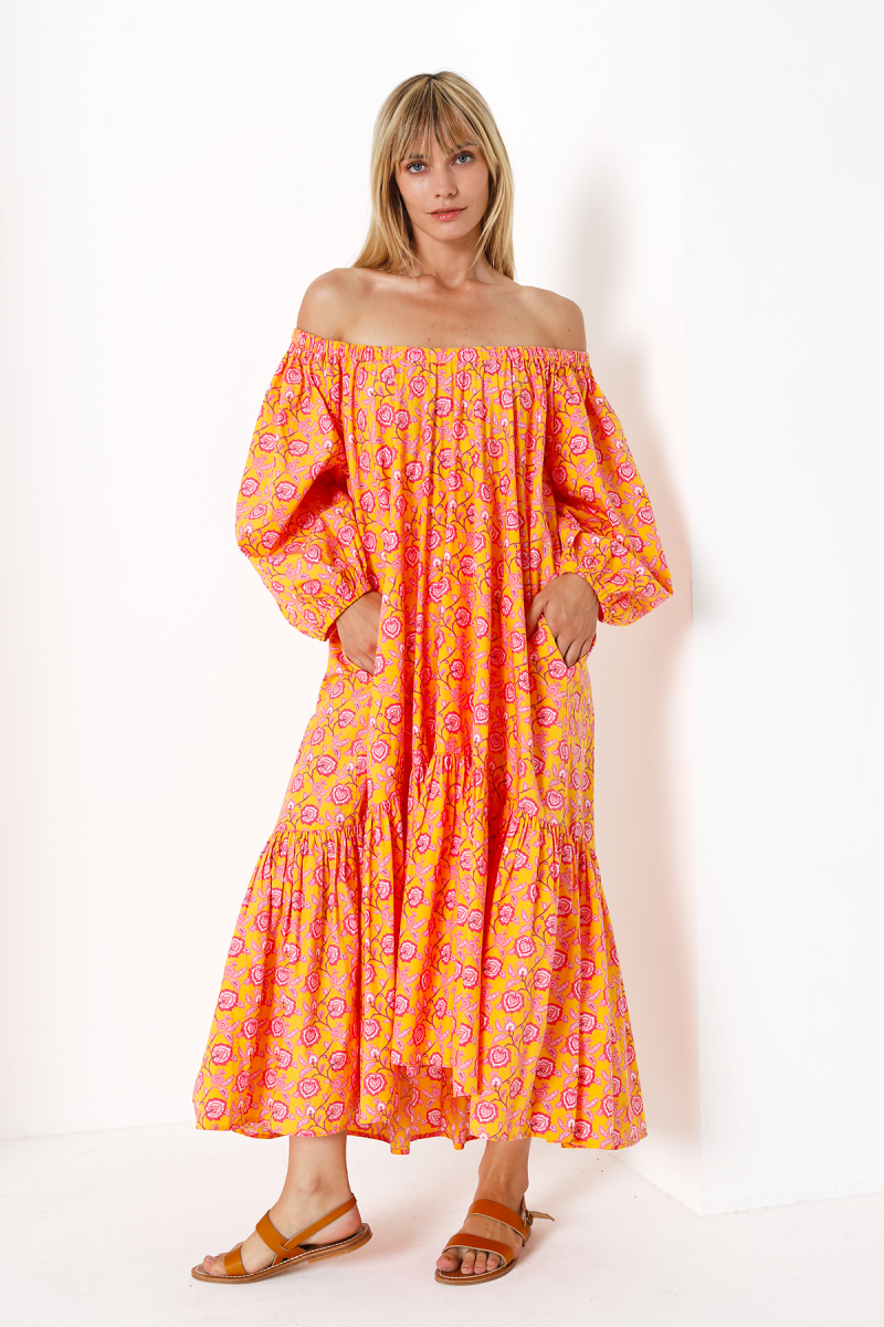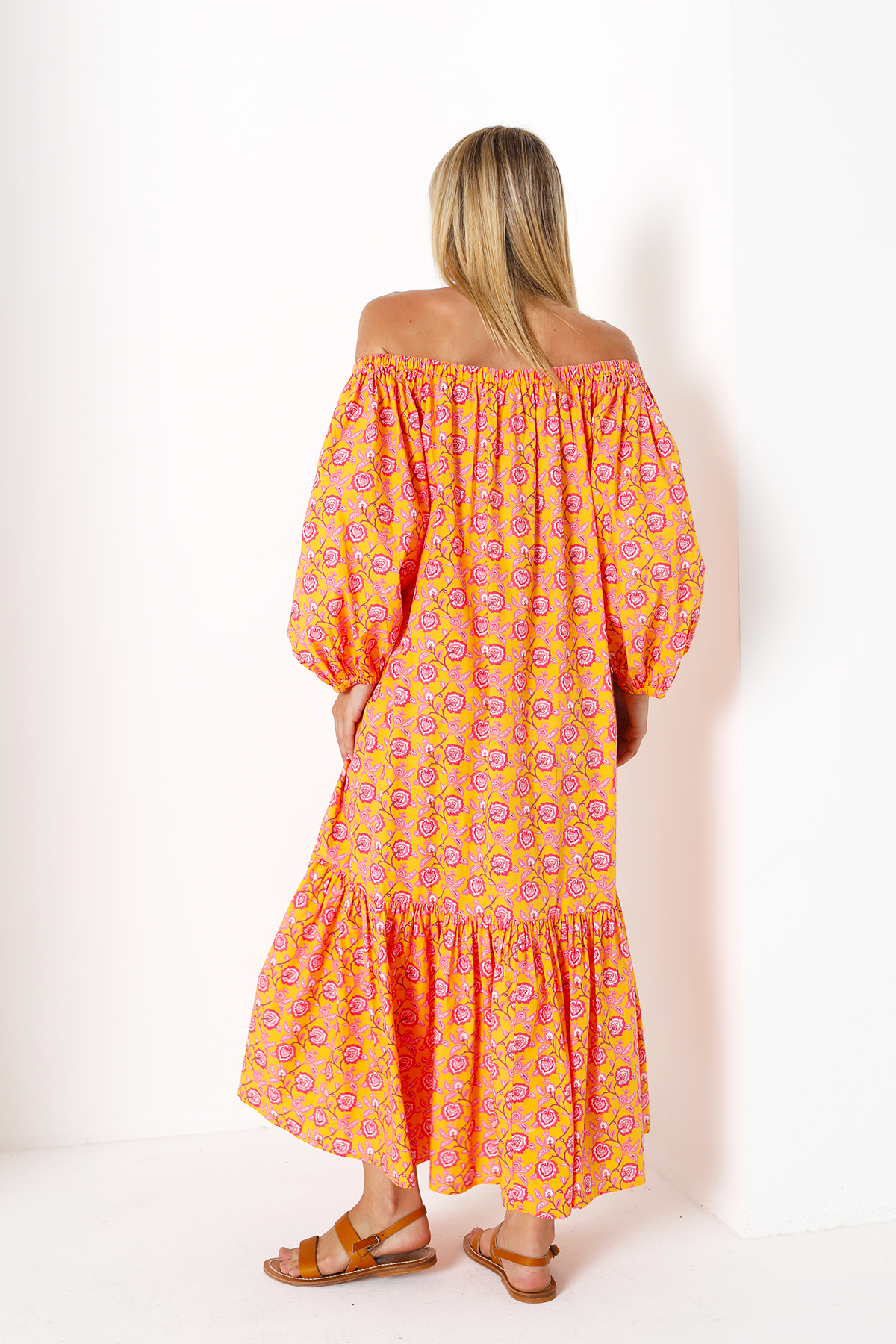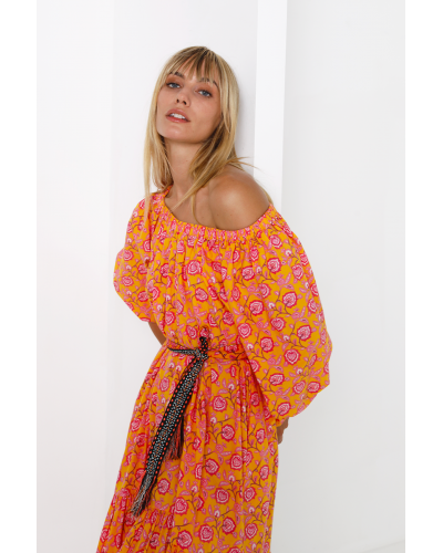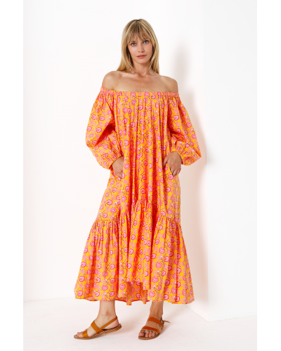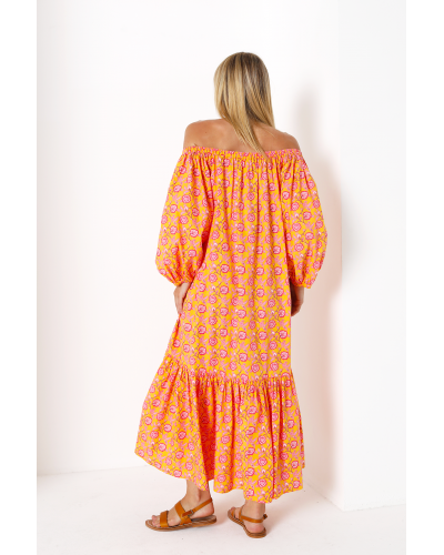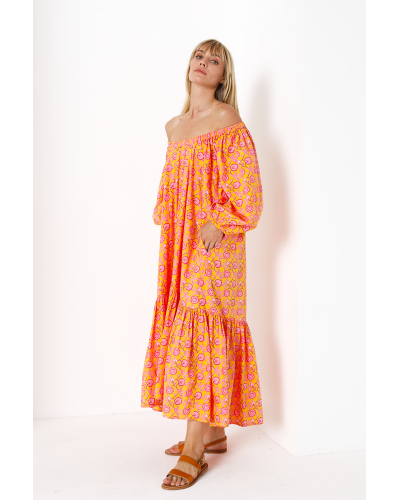 La robe Party est imprimée du motif vitaminé Gaucha. Elle est réalisé en popeline de coton et présente une encolure élastiquée. Complétez votre look avec un panier en osier et vos sandales préférées.