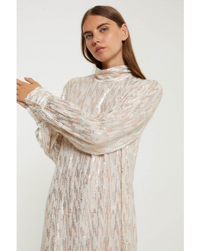 Succombez au charme de notre robe Dehia, idéale pour célébrer la saison des fêtes. Sa coupe distinctive et sa couleur en font une pièce unique, vous assurant un style qui vous est propre pour illuminer vos soirées avec éclat. Sa finesse et son élégance garantissent à la fois glamour et confort grâce à sa matière douce et légère. Ne tardez plus, votre tenue de fête vous attend !