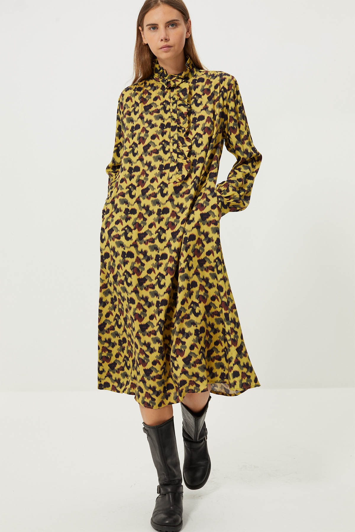 Robe mi-longue motif léopard