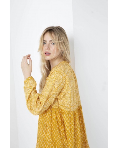 search Aperçu rapide Chariot Supprimer du panier Ajouter aux favoris Blouse NIKITA Prix 140,00 € Blouse en lurex dorée . Coupe droite . Encolure V . Manches longues . Base arrondie . Plus longue à l'arrière qu'à l'avant...