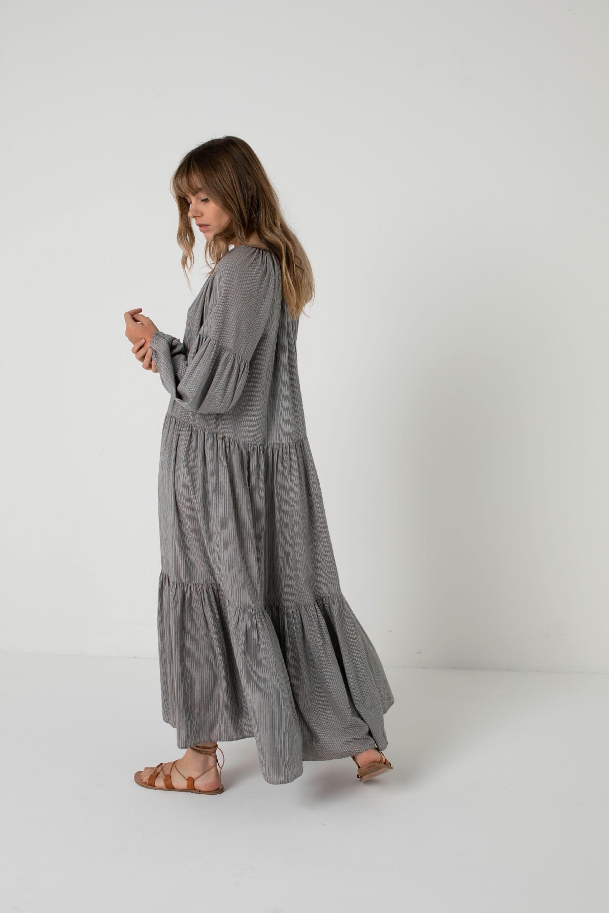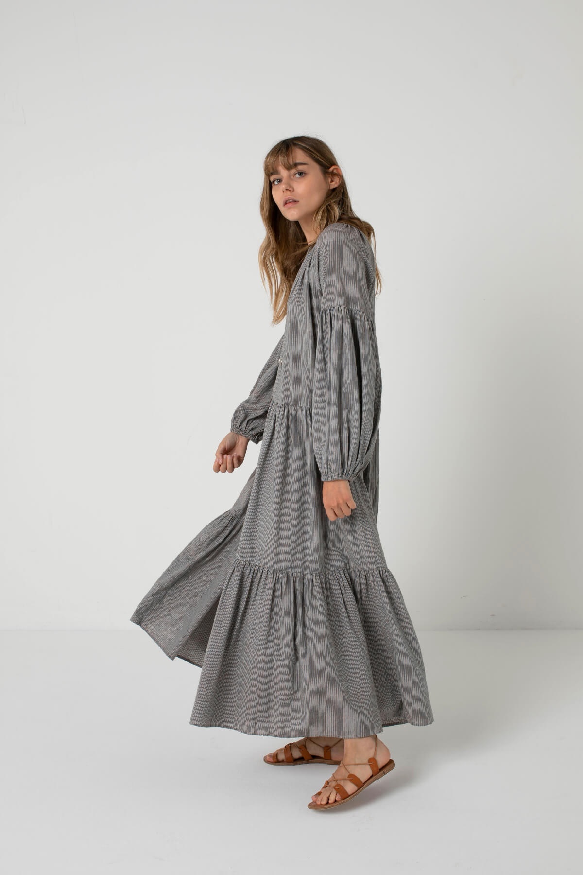 search Aperçu rapide Chariot Supprimer du panier Ajouter aux favoris Robe DANAE Prix 265,00 € Robe longue en lurex reflets métalliques . Coupe ample . Col en V à nouer . Manches longues . Poignets larges boutonnés . Taille froncée...