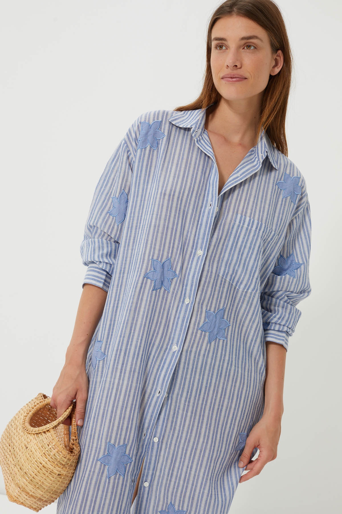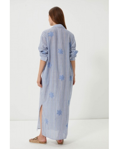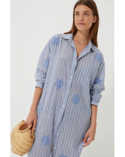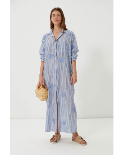 Une coupe classique chez Charlie Joe, réinterprétée cette saison dans un coton léger et doux, un motif rayure associé à de délicates broderies.