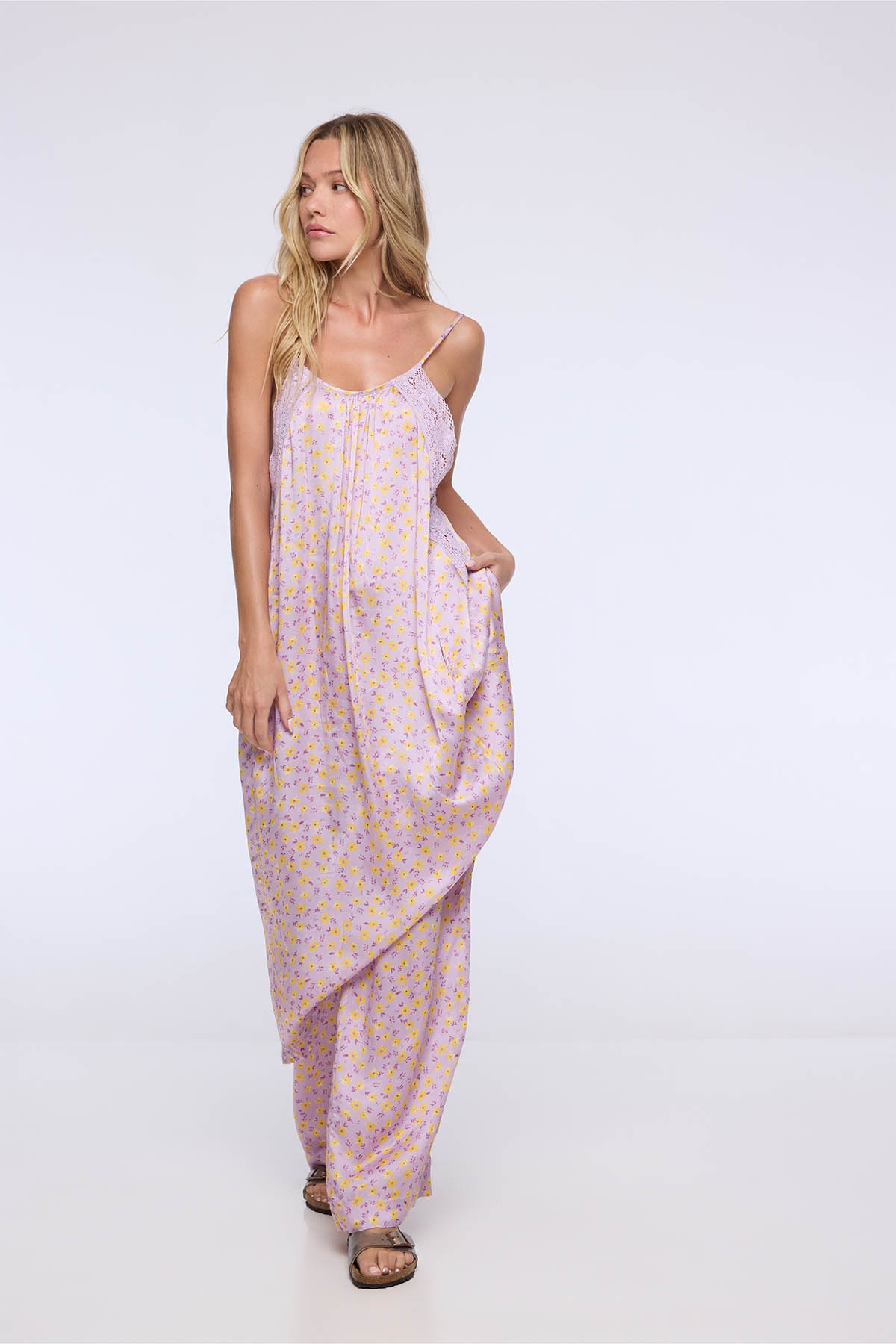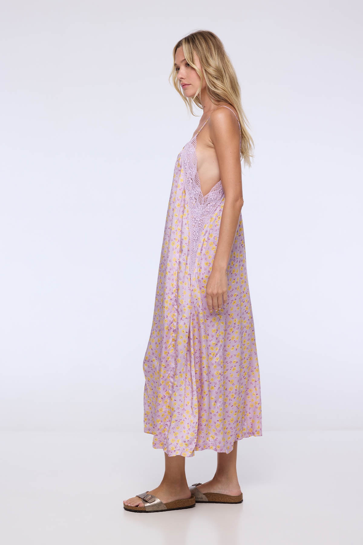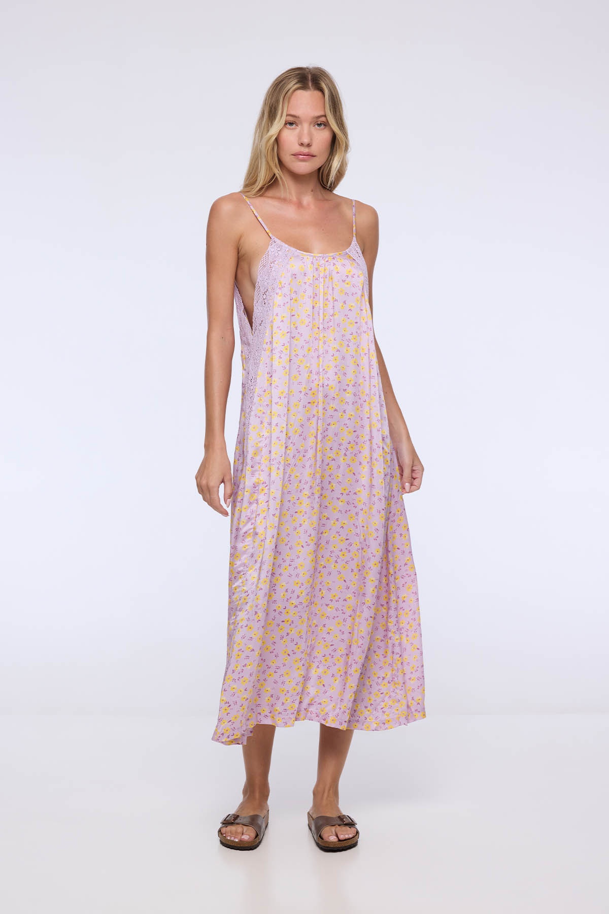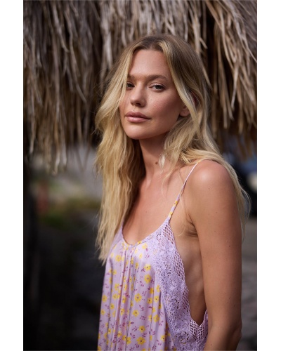 Ses fines bretelles et son décolleté arrondi apportent une touche de simplicité et de sensualité, tandis que ses côtés en dentelle ajouré révèlent subtilement la peau pour un esprit bohème et raffiné.